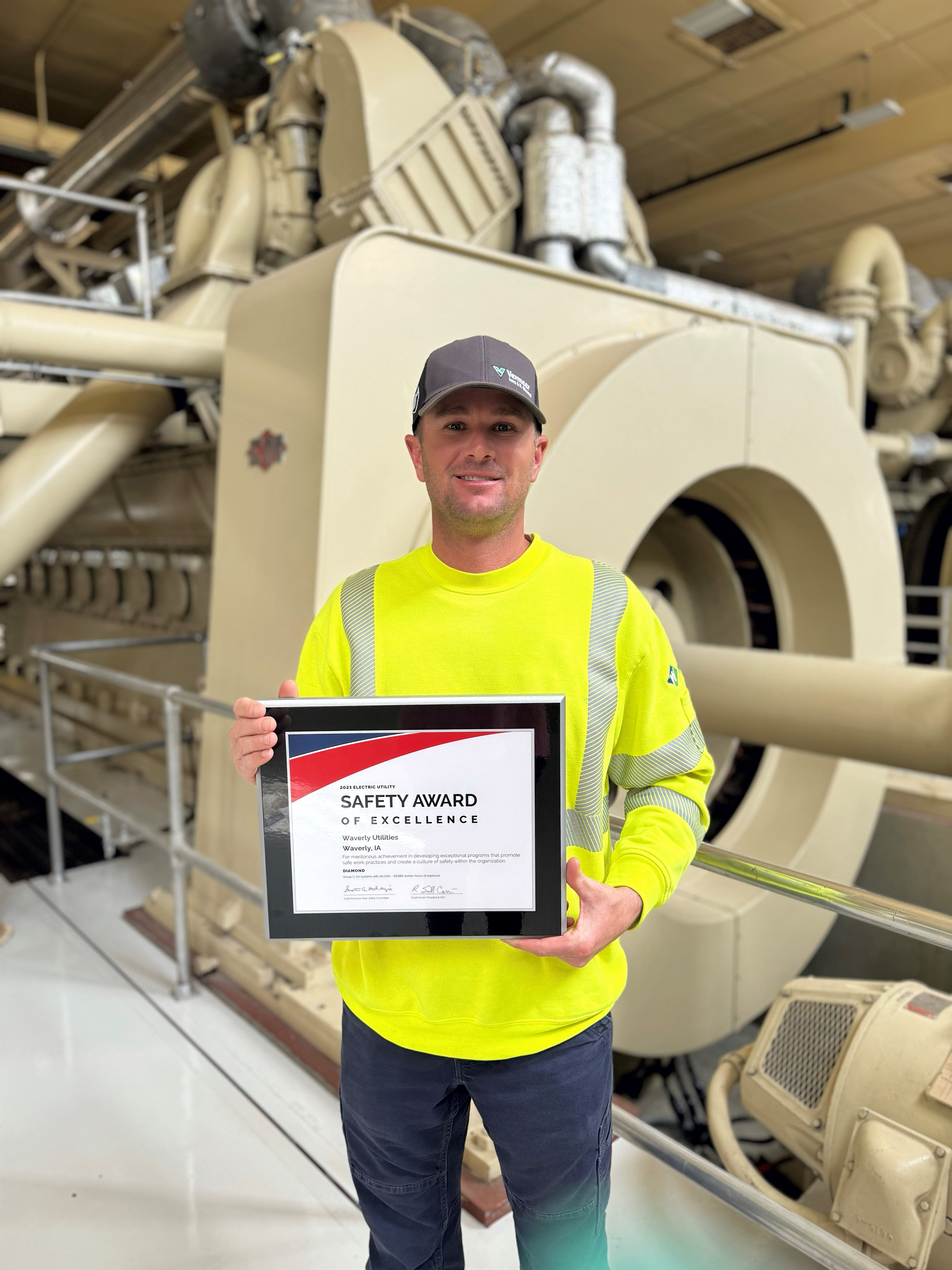 Journey Lineman Jarred Juhl with the Certificate of Excellence in Reliability award. |